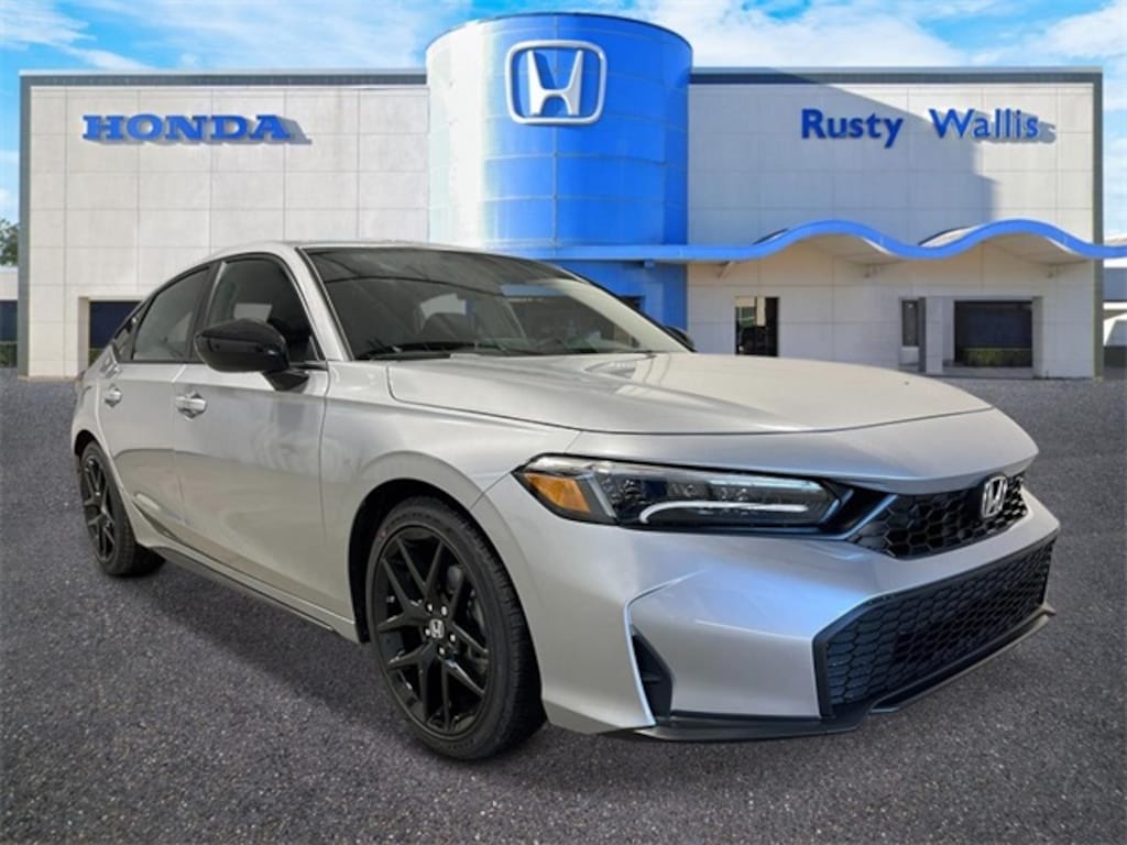 Solar Silver Metallic 2025 Honda Civic Sport FWD CVT 2.0L I4 DOHC 16V Civic Sport, 4D Hatchback, 2.0L I4 DOHC 16V, CVT, FWD, Solar Silver Metallic, Black Artificial Leather.