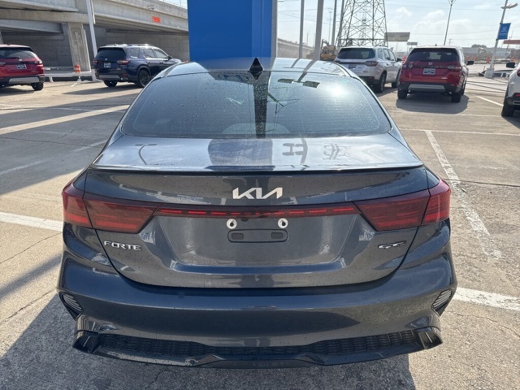 Bold and efficient. The 2023 Kia Forte GT-Line is a sporty 4D sedan that blends eye-catching design with everyday practicality and impressive fuel economy. Finished in Gravity Gray with a Black Cloth interior, this front-wheel drive Forte GT-Line is ideal for commuters, students, and drivers across North Texas who want modern style and dependable performance in a compact sedan.